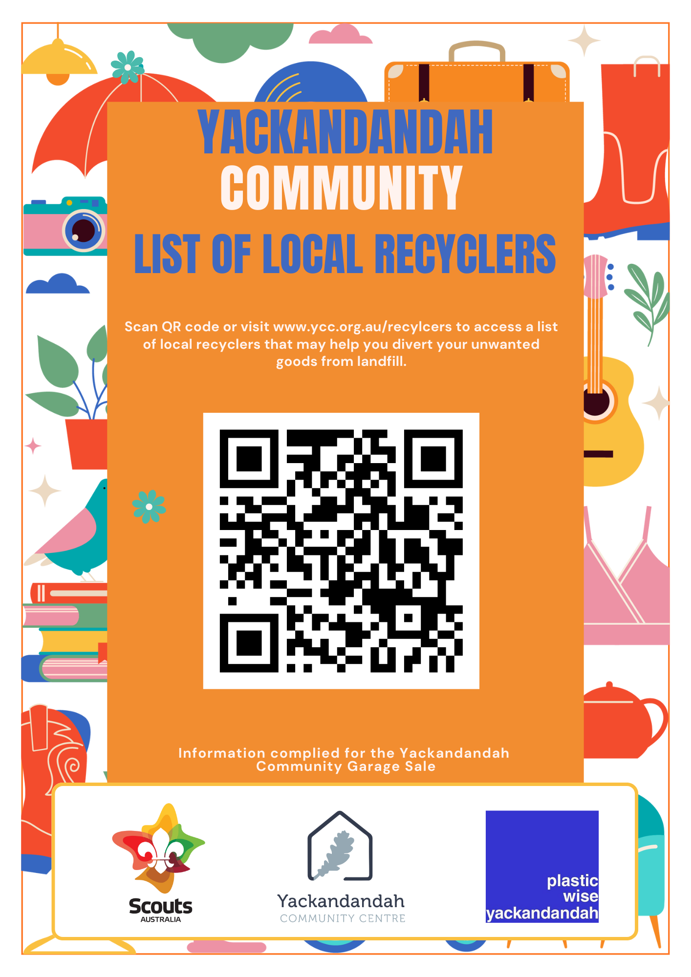 The Yackandandah Community Garage Sale has been organised in collaboration with the 1st Yackandandah Scouts group, Plasticwise Yackandandah and the Yackandandah Community Centre.